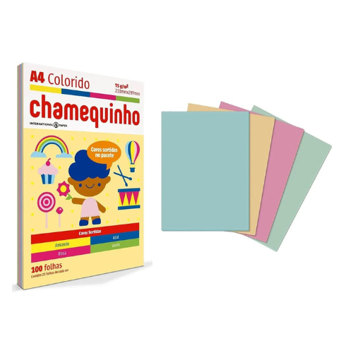 PAPEL SULFITE A - 4 - C/ 100 FLS 4 CORES SORTIDAS